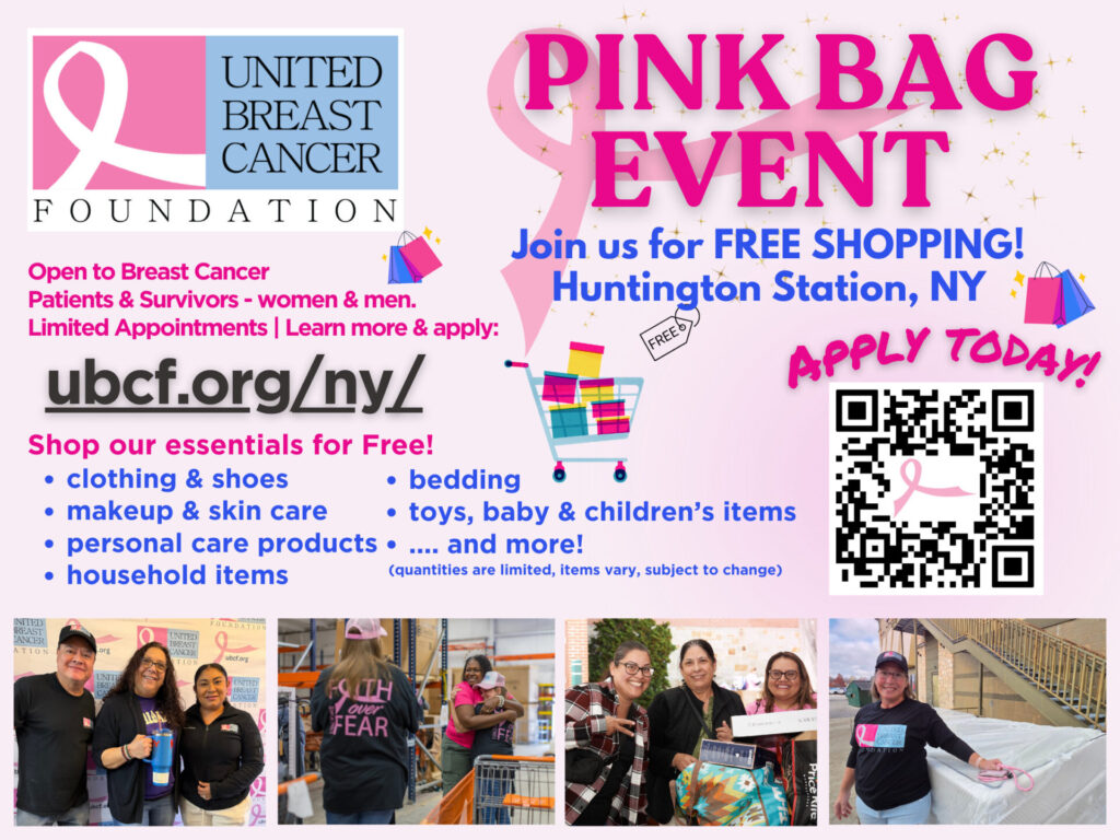 UBCF’s doors are open for regular Pink Bag Event shopping appointments! This is not a one-day event – it’s an ongoing opportunity for breast cancer patients and survivors to shop for free, with individual appointments available at our headquarters in Huntington Station, NY.